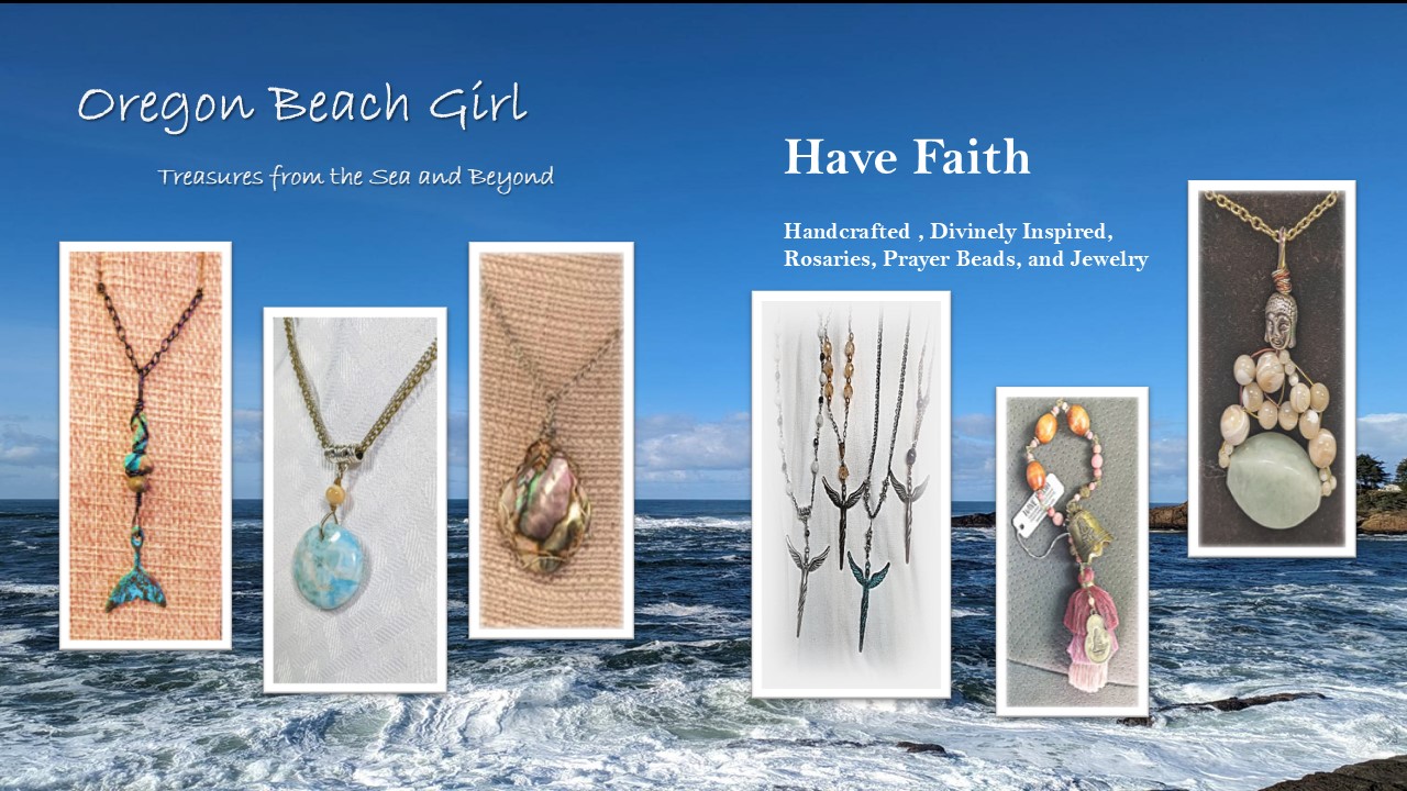 Shop FEATURED PRODUCTS, Oregon Beach Girl Collection, or the Have Faith Collection: CLICK on Menu (three lines top left)!