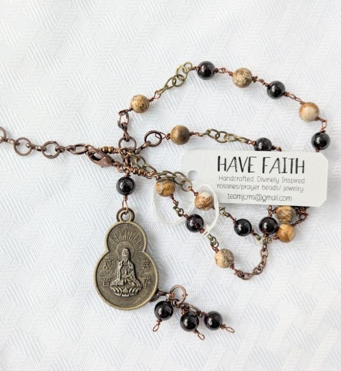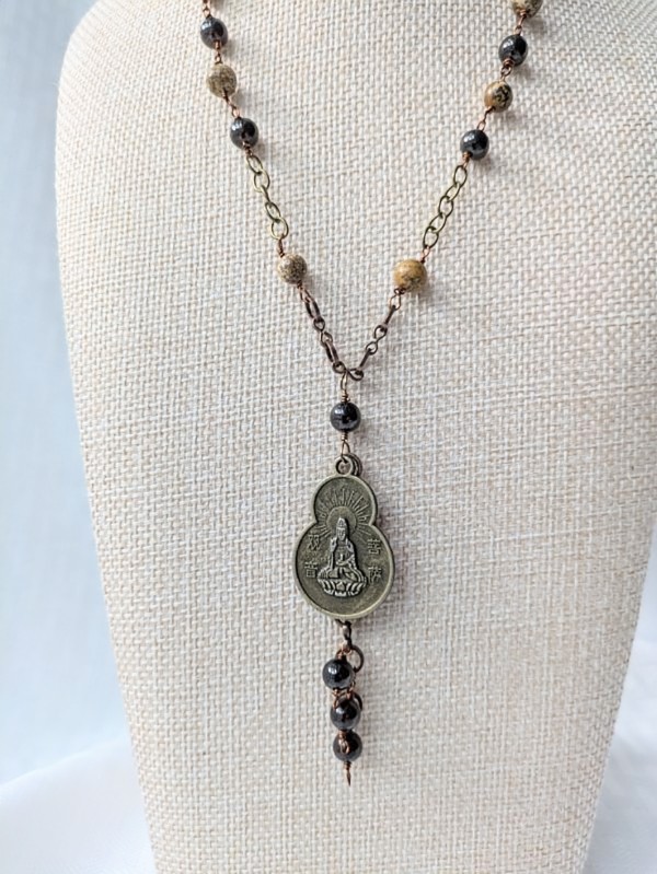 Unique Jasper and Garnet Quan Yin Necklace from Have Faith.