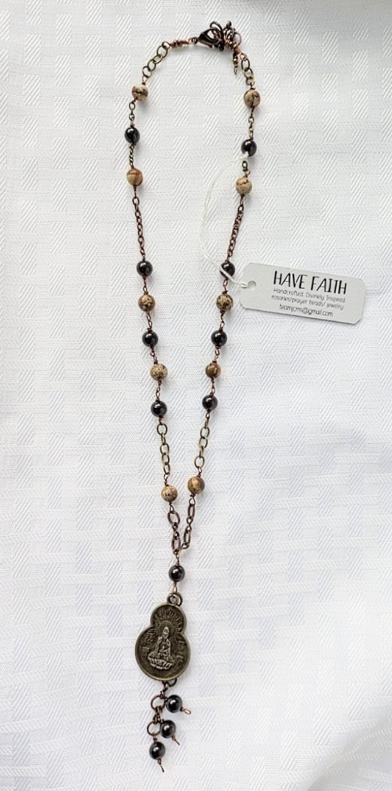 I have created two distinct lines of unique jewelry. Oregon Beach Girl "Treasures from the Sea and Beyond" and Have Faith "Divinely inspired Rosaries, Prayer Beads and Jewelry".