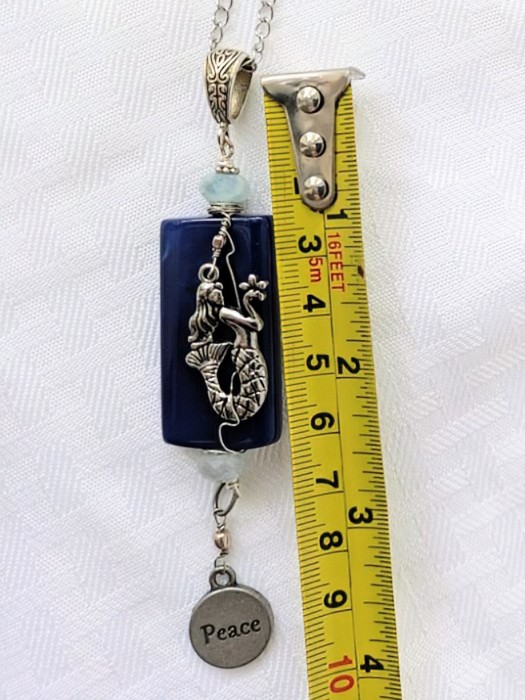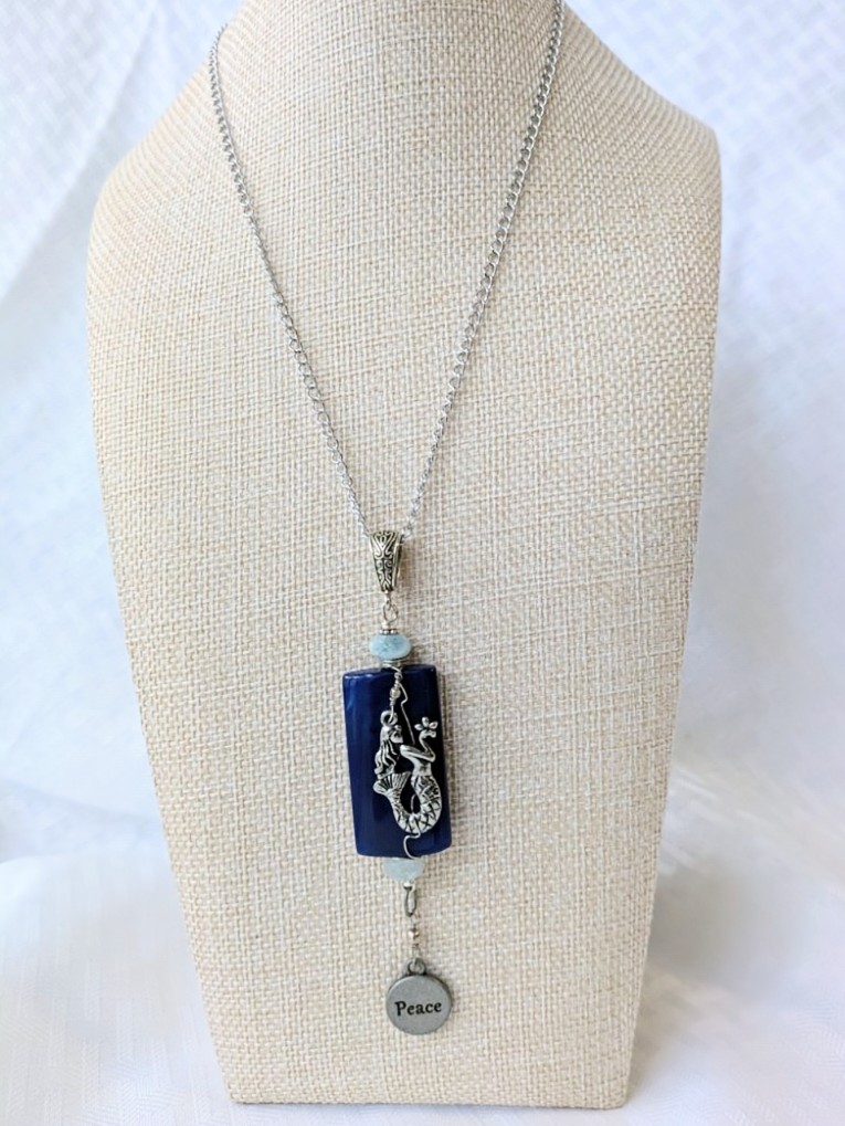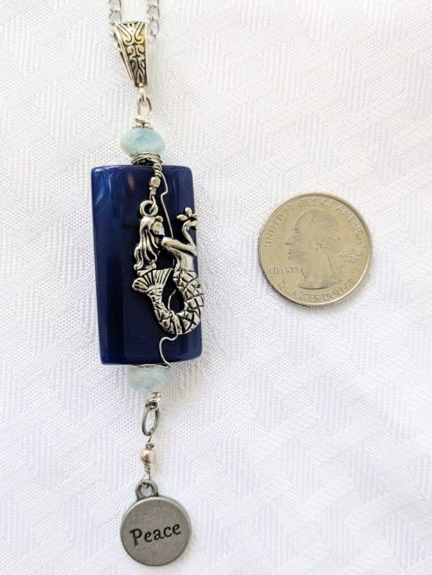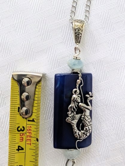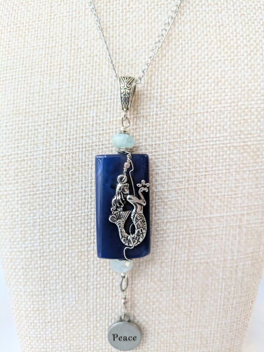 A beautiful Royal Blue Agate (dyed) is the perfect backdrop for this whimsical Mermaid Necklace from Oregon Beach Girl!