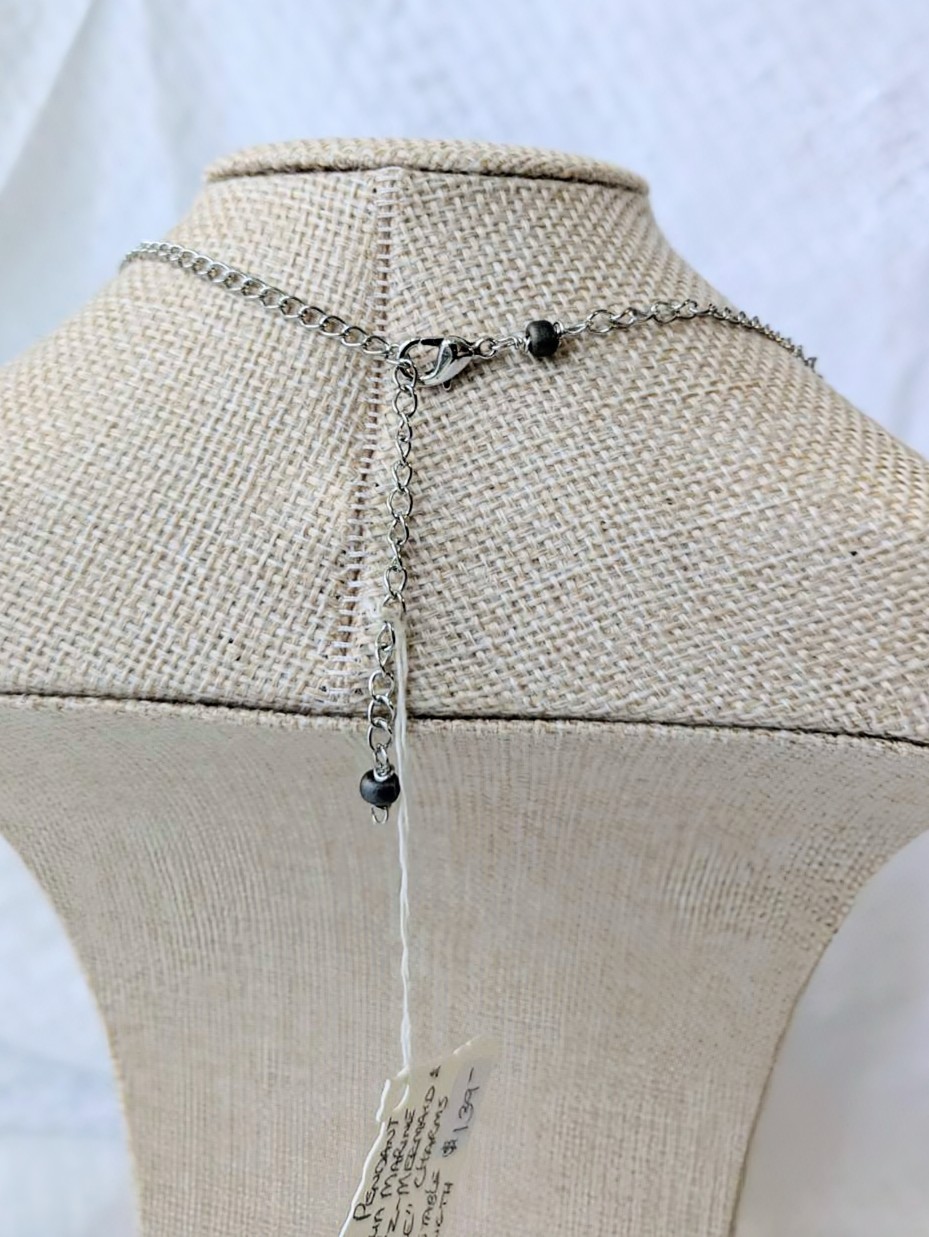 The length from the top of the embellished bail to the bottom of the charm is approximately 4 1/2" in length. The 3 mm plated chain is adjustable to approximately 29".