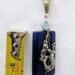 The Agate is a rectangle shape and measures approximately 1.5" long by 1" wide. It is capped with two faceted Aquamarine Beryl rondelles. From the bottom of the Agate dangles a "peace" charm.