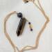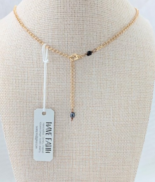 The 3mm chain is adjustable up to 30" in length and can be clasped anywhere on the chain. It is finished with two glass seed beads.