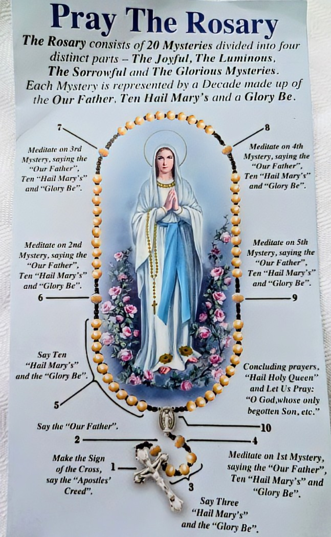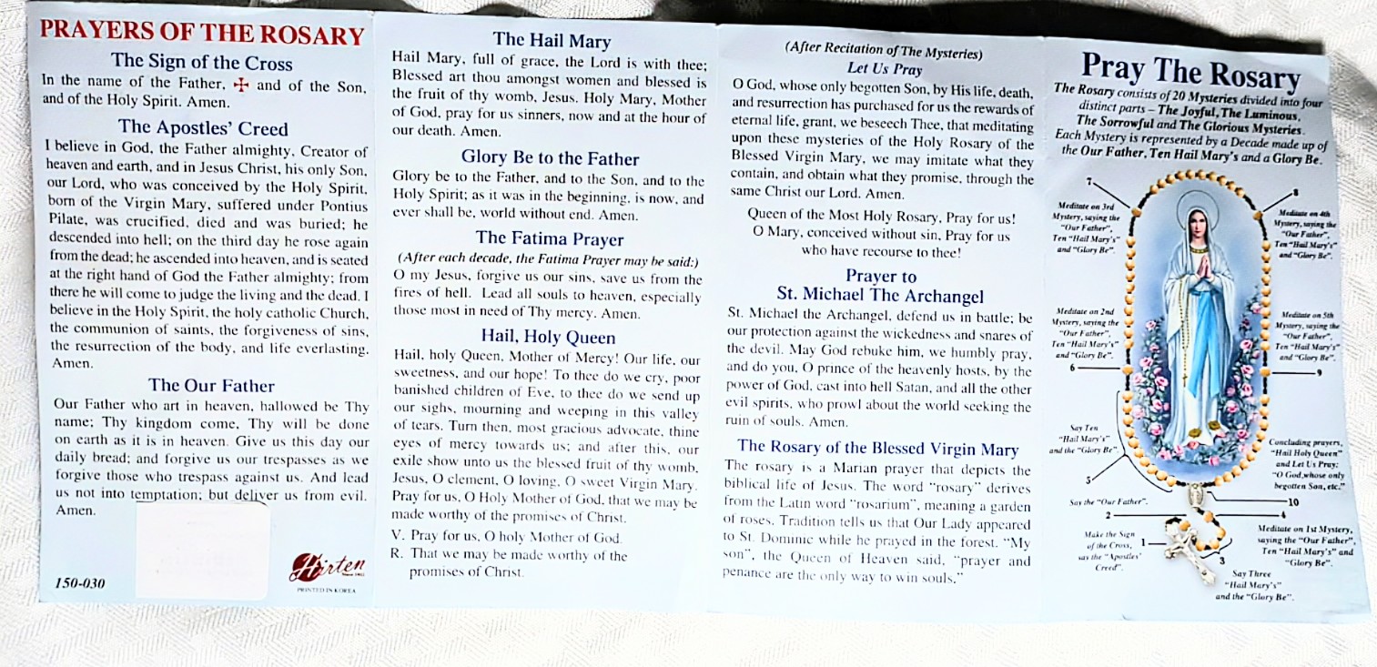 This rosary comes with a "Pray the Rosary" card with pictures and all pertinent prayers. This is a beautiful expression of the Catholic faith and a gift for yourself or a loved one.