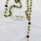 There are 53 decade beads (Green garnet 6 mm) representing the "Hail Mary" prayer and 6 beads for the our Father prayer (Amethyst 8 mm).
